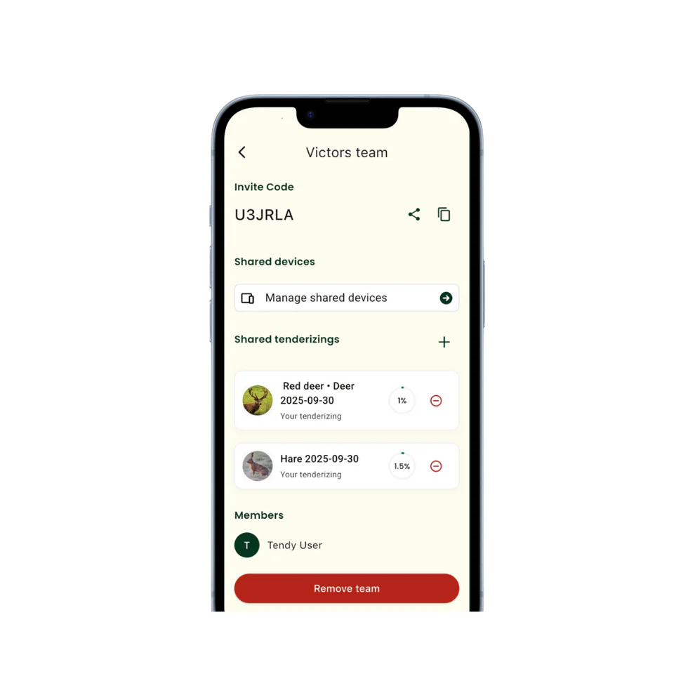 In vielen Revieren läuft Wildbretverarbeitung im Team – und genau dafür sind die Jagdteam-Funktionen gemacht. Ihr könnt ein Team anlegen, gemeinsam an Prozessen arbeiten und relevante Informationen teilen. Das reduziert Rückfragen, schafft Transparenz und hilft, dass jeder den aktuellen Stand kennt – besonders praktisch, wenn mehrere Personen an Kühlung, Reifung, Zerwirken oder Verpackung beteiligt sind.