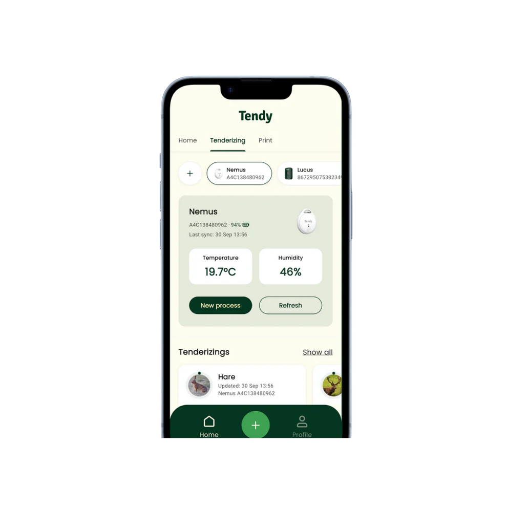Eine kontrollierte Reifung ist entscheidend für Geschmack, Zartheit und Haltbarkeit. Mit Tendy werden Zeit und Temperatur nicht nur gemessen, sondern verständlich in der App dargestellt. So erkennst du auf einen Blick, wie sich ein Prozess entwickelt und wann ein Eingreifen sinnvoll ist – unabhängig davon, wo du gerade bist.
